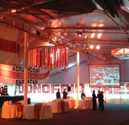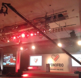 Servicio de sonido, iluminación, proyección con 8 proyectores 6k, circuito cerrado HD, streaming, intalación 4 LCDs de 42″ y lanza confeti.