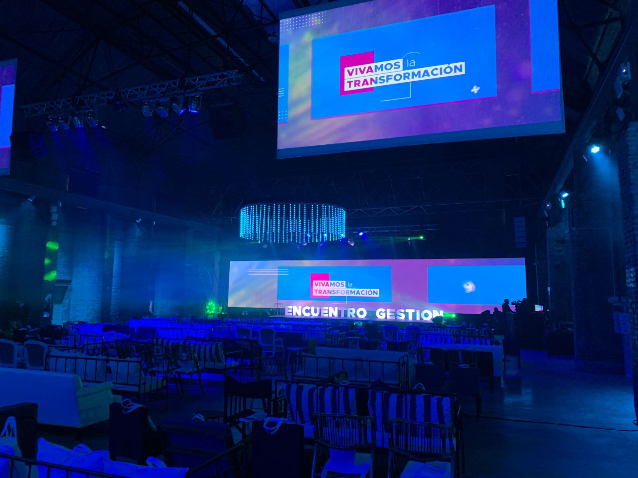 Servicio sonido para 1100 personas, Pantalla led 16,00 x 3,00 metros ,player WO 6 con redundancia.led tv prompter,CCTV